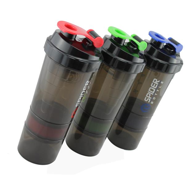 This 600ML protein shake bottle has a stainless steel ball inside for diet, juice and nutrition drinks mixing. With 2 bottom containers, you can put the tablet in the pillbox in the middle bottom container. Put the protein powder in the bottom container. Your customzied logo is welcomed.