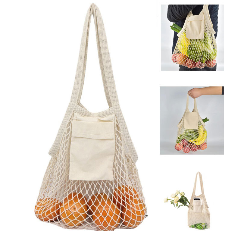 Reusable mesh bags are made from pure cotton ,100% high quality mesh cotton which is safe, washable and eco-friendly, reduce pollution. This woven mesh bag features long handles ensuring easy and comfortable carrying of groceries or shopping. t has a pocket adhered to the surface, which can hold the whole bag or place some little things.