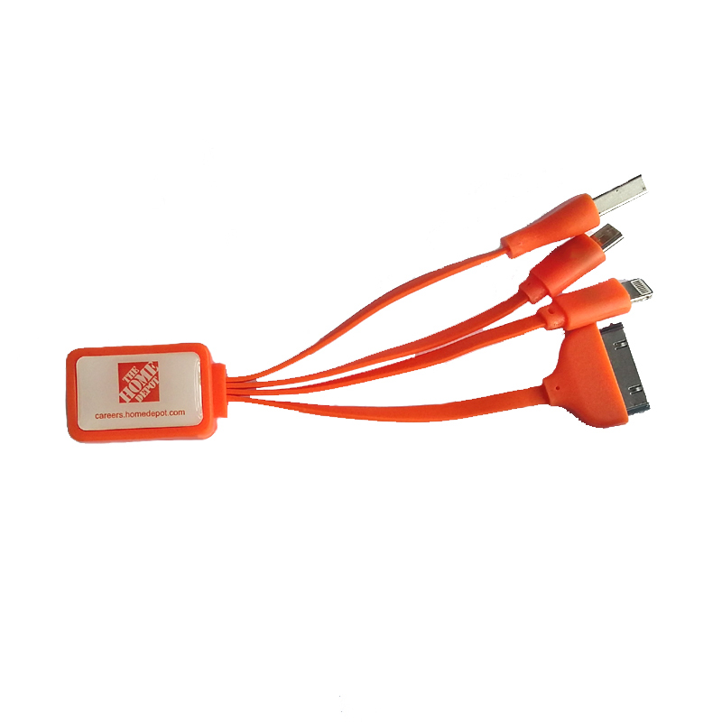 Charge your phones or electronics with this multi cable. Suitable for Apple and Android system, contect with your laptop or power bank. 3 plugs Include one 30 pin, one 8 pin, one micro USB. Easy to carry away, Lightweight and compact. This is a good travelling and office partner. Your full color LOGO or artwork can be epoxy imprinted on the plastic hub.