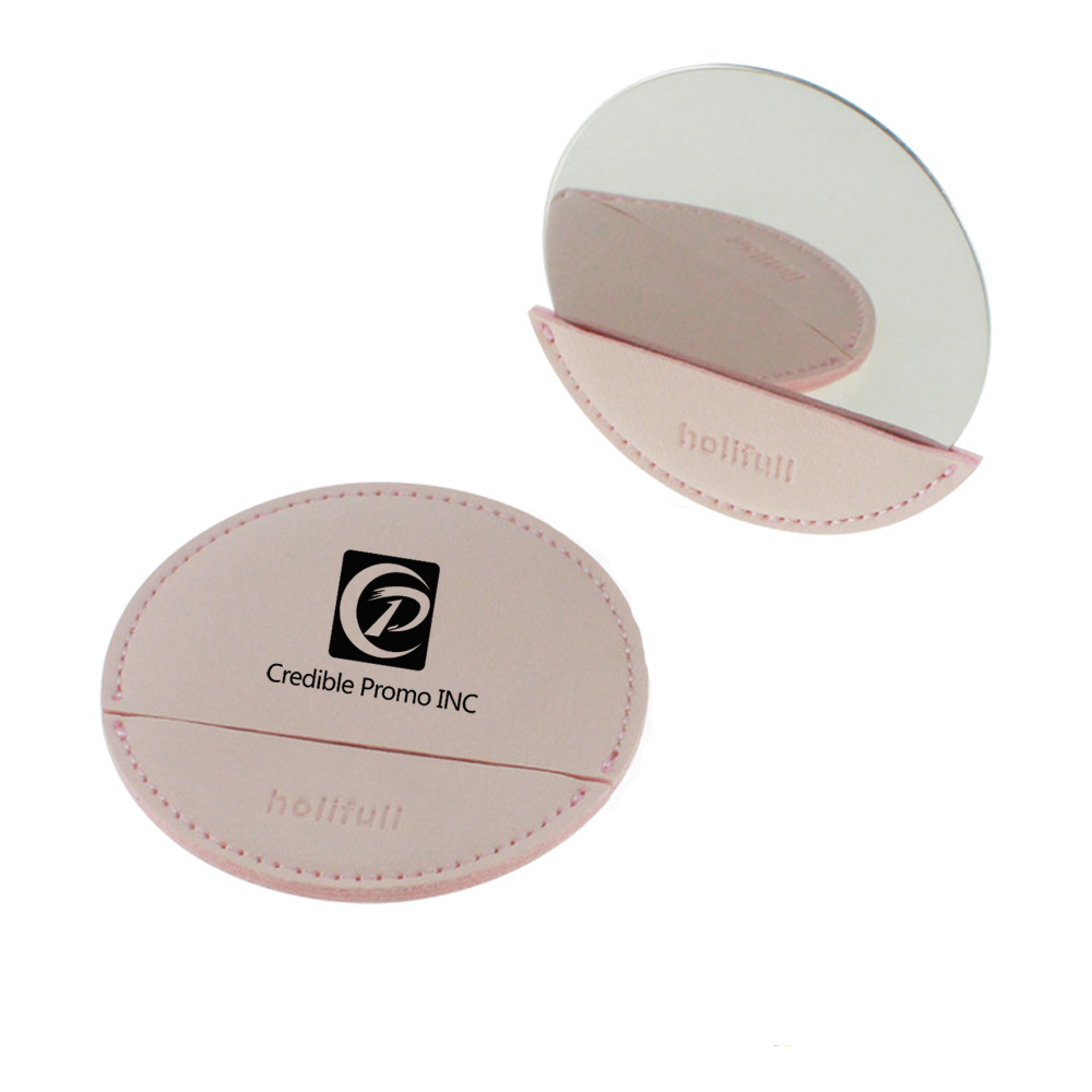 Round Compact Mirror With PU Leather Cover