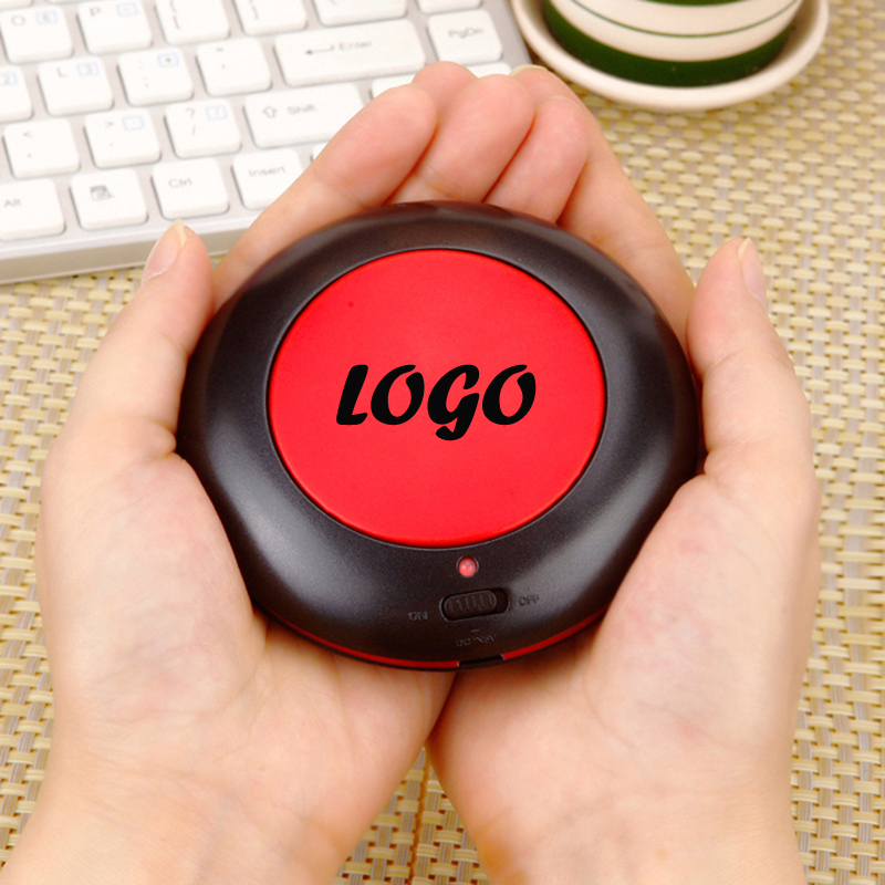 Round shape hand warmer power charger, with high volume 7,200 mAh. Round shape design, portable. Size 3 3/4" diameter X 1 1/4" height. Double warming sides design, long warming time: around 5-7 hours for each full charging. One button control design, three colors for your option. Your customized logo can be imprinted on the generous area. Price includes one USB cable and English user manual.
