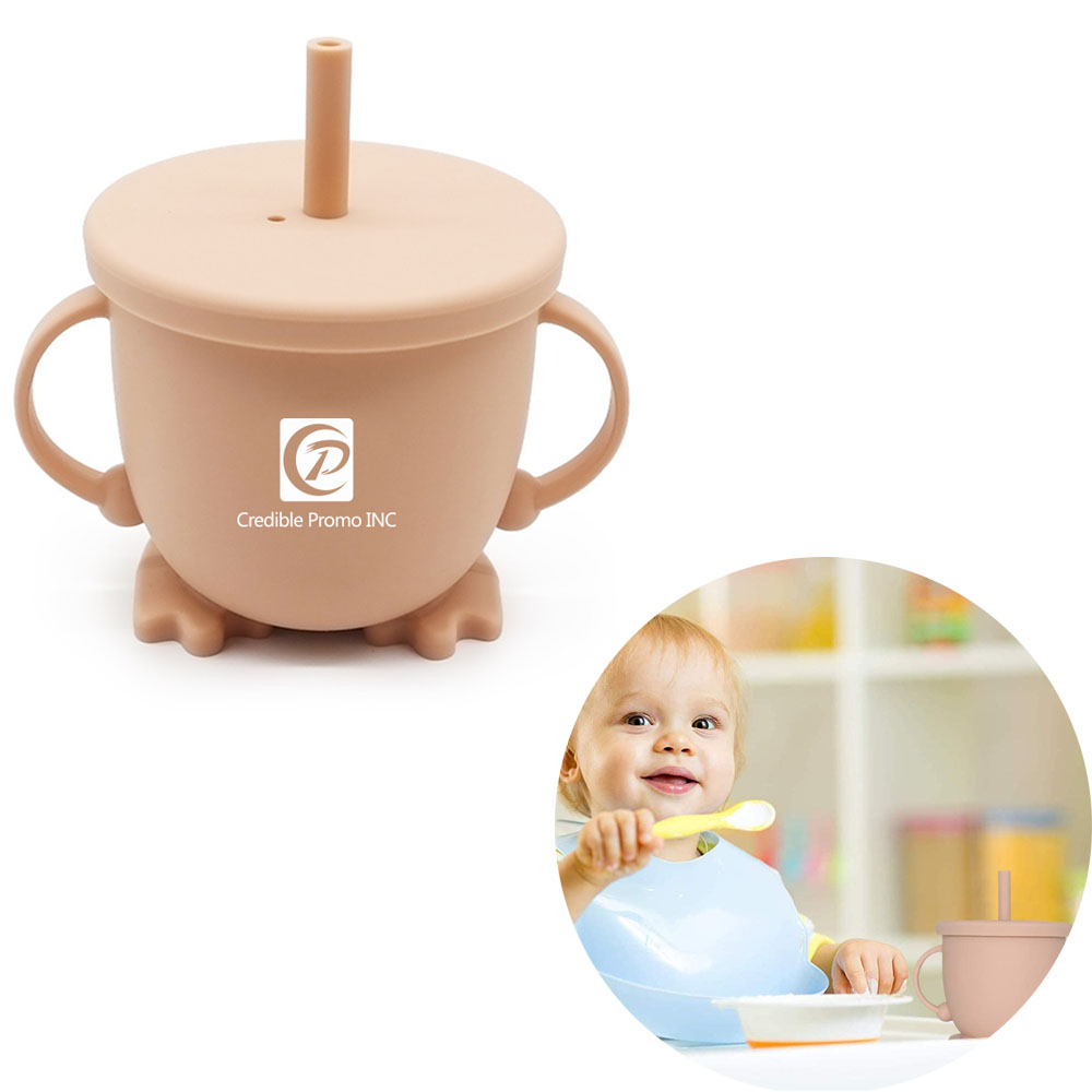 This baby cup is made of food grade silicone. It's an odourless, clean, and drop-proof baby training cup. Two easy grip handles, your baby can easily hold and drinking out of the drinking cup. They will be happy to learn to drink independently from this cup. Easy to clean and Drop-proof. Perfect for promotion with your logo.