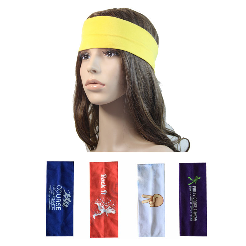 This headband suit for any sport, yoga, running, gym, etc. Made of acrylic. It is soft and absorbent. It can keep you hair trim and soaks up sweat when you do sports. The logo and size can be customized.