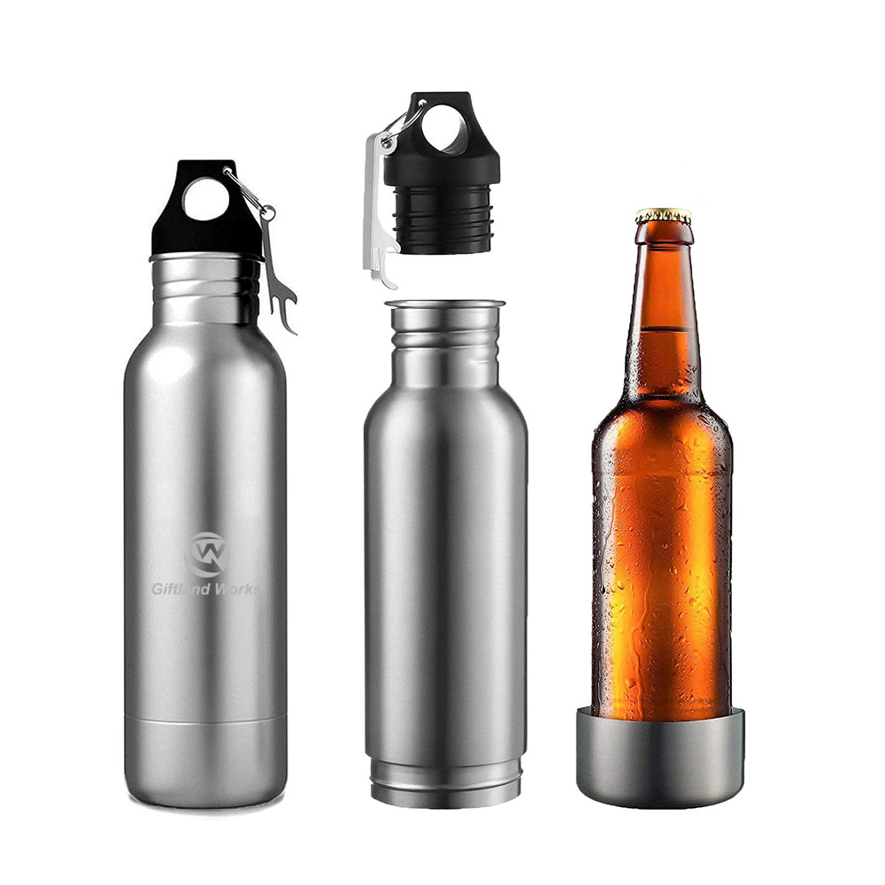 Our stainless steel bottle fits all standard 12oz bottles and are sweat-proof while staying cold. Bottom is removable to allow bottle to be inserted while the cap screws on and off. With the cap screwed on a seal inside prevents spilling. Easy to clean and fits most cup holders. The bottle opener included so that you never have to search for something to open your bottle caps. Great for use both indoors and outdoors especially where you need to be discrete with your drink. Your LOGO or artwork can be laser engraved on it.