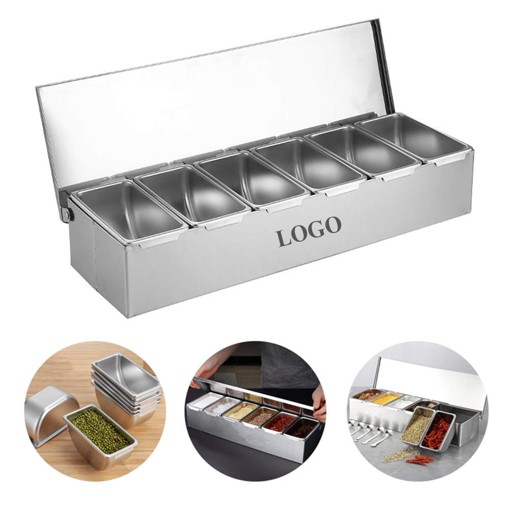 | Feature : | Stainless Steel Condiment Caddy Garnish Station Serving Tray with Lid |