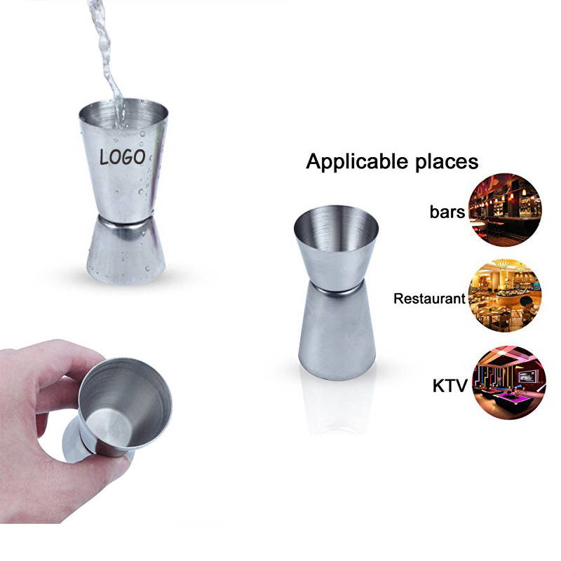 Made from food grade stainless steel, FDA approved and BPA-free. Double-sided design can be used as both drinking and measuring tool. One is 15ml/0.5oz, another is 30ml/1oz. Applicable to bars, hotels, cafes, KTV and other entertainment venues. Your customized logo can be laser engraved on it.