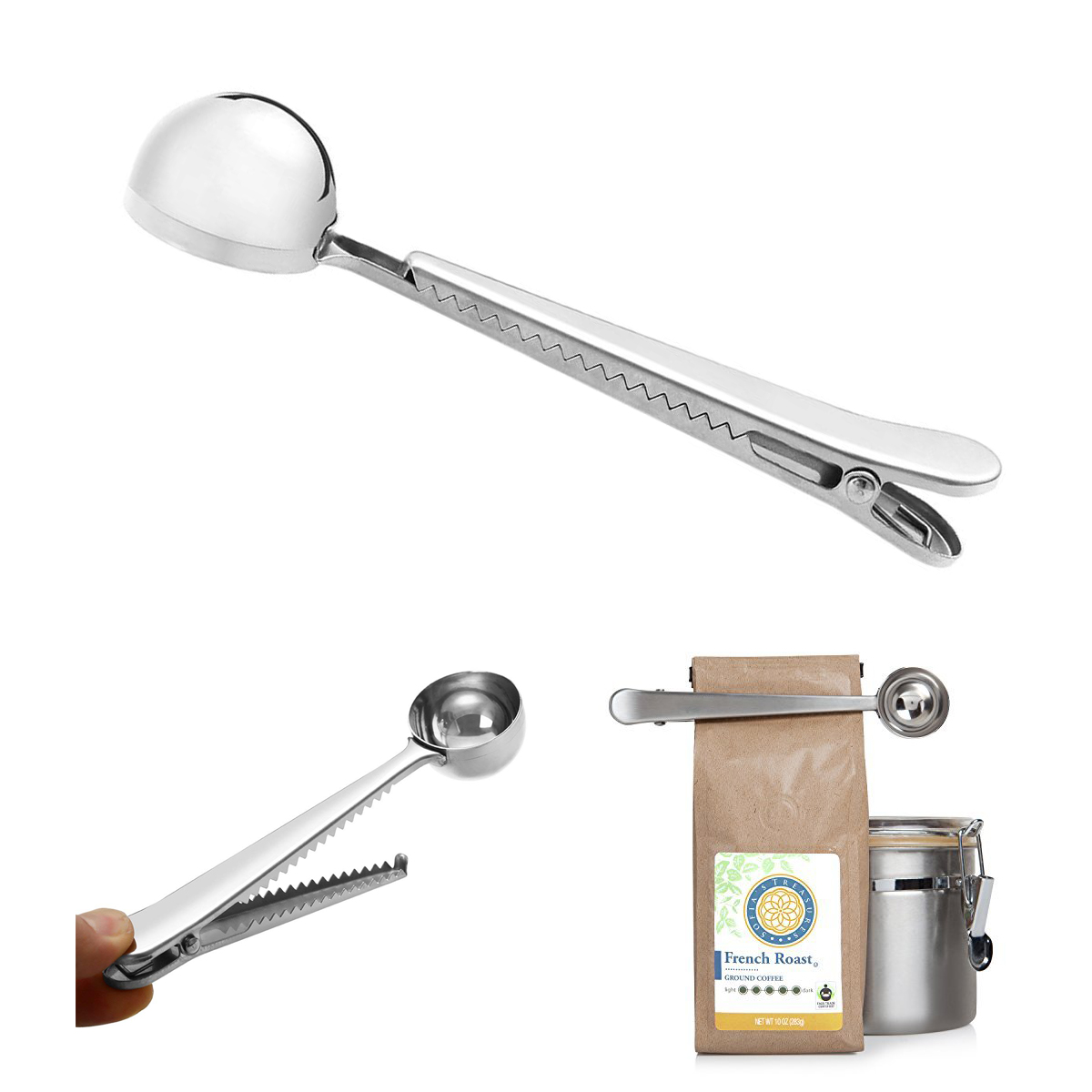 Food safe grade stainless steel tablespoon measure for years of ground coffee scooping and sealing pleasure. Our quality designed durable steel measuring scoop spoon comes complete with a comfortable thumb grip pressure clip. Measuring spoons also can be used to measure milk powder and tea leaves, etc. A useful and convenient addition to your kitchen. You can laser your artwork on surface.