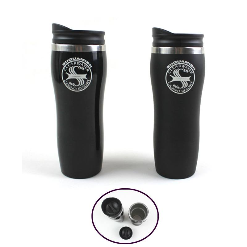 This mug is made from stainless steel. Two layers thermal insulation design. Volume is 14 OZ. Your company LOGO can be imprinted on the outside.