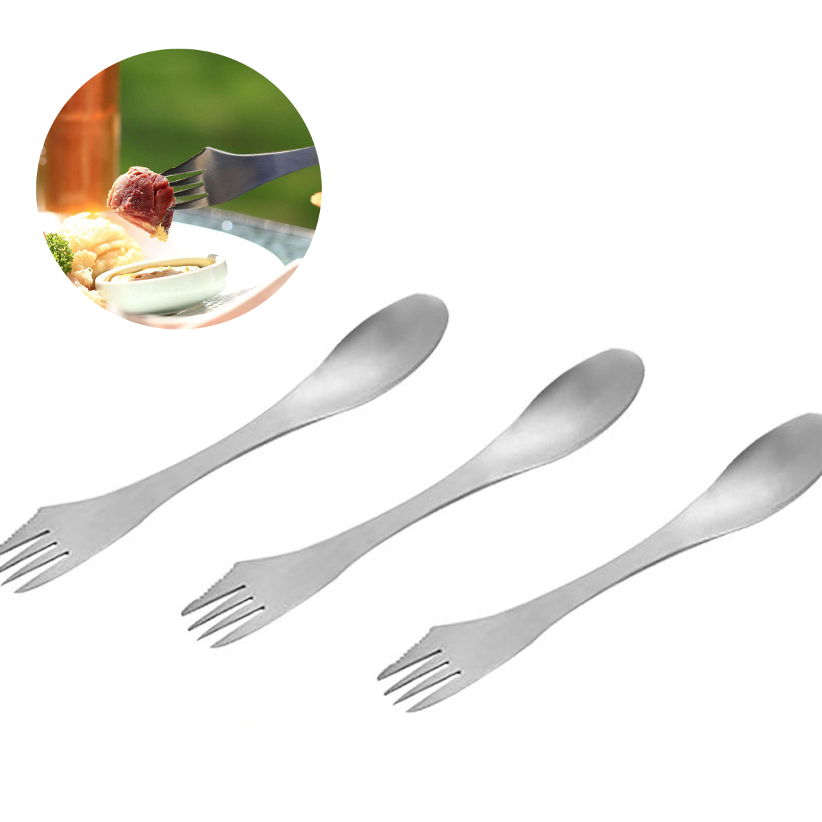 3 in 1 Sporks - Spoon-Fork-Knife combo, One end is spoon to allow you enjoy frozen ice cream and homemade soups and the other end is fork to eat your salads, franks, marshmallows, beans and so many more. The edge of the fork is serrated to use as a knife for butter spreading, slicing pancakes or even cutting ropes. Designed to have an ergonomic shape and size and satisfy even the most demanding outdoor eating needs. It is great for outdoors activities, camping, biking, hiking, fishing, backpacking and more.