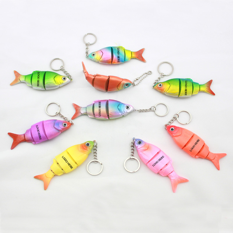 Swimming fish with keychain, the body will swing from side to side when you make it upright, like a real swimming fish, extremely beautiful and lively. Made from plastic, many colors for your option. Your LOGO can be imprinted on.