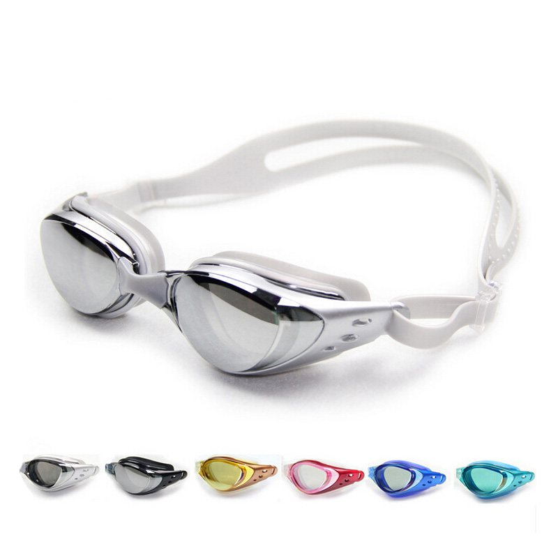 Universal Swimming Goggles Glasses. UV protection and anti-fog, with sides adjustable buckle, soft pure silicone tape, great elasticity. Easy to use. Mirror coated lens and soft silicone eyecup. Siamese nose bridge design is comfortable to wear. Many colors for your option. Your LOGO can be imprinted on the silicone belt or on the outside of packing case.
