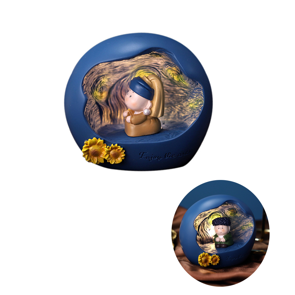 Inspired by Van Gogh's starry sky, it is a work of art. There are two models, A/B, which are the same size 3.86x3.54x2.44 inches. A small light is designed inside, which can be used as a night light or just as a decoration. It is a great decoration for your home or office, and can also be used as a gift for families and friends.