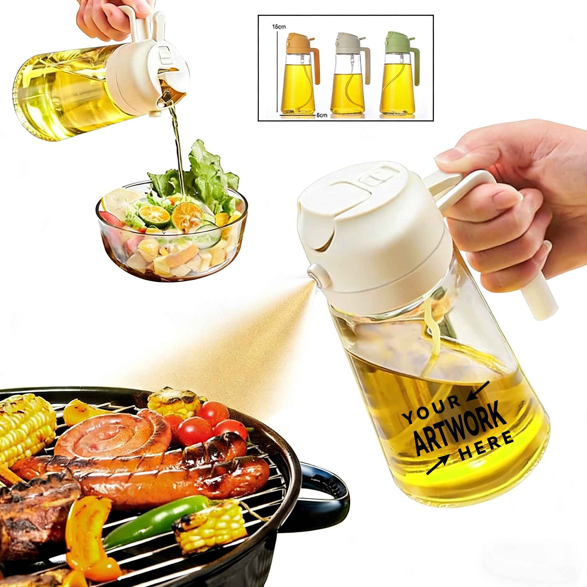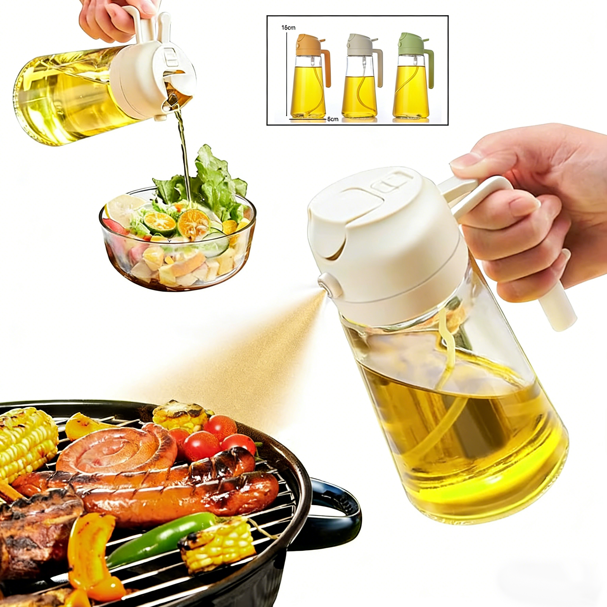 16oz/470ml Glass 2 in 1 Oil Spray Bottle with Pourer
