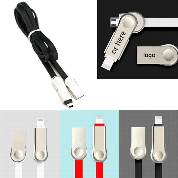 This combines both micro usb and lightning cable into one cable. Super convenient!! Made of high quality rope and zinc alloy connector heads. Noddle flat design for easy carry and your logo imprint. 3 Feets long cable with fast and stable charge and data transmission. Compatible with Apple 6 / 6s and all the Micro USB devices.