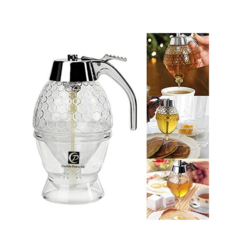 Easy to use, Simply press the release on the handle and honey will instantly flow out the bottom. You can simply fill the glass base with warm water, set the honey dispenser on top and wait a few minutes for the honey to warm up. Easy to put honey in tea, syrup, dispenser on pancakes, and even in coffee, without your honey getting clumpy.
