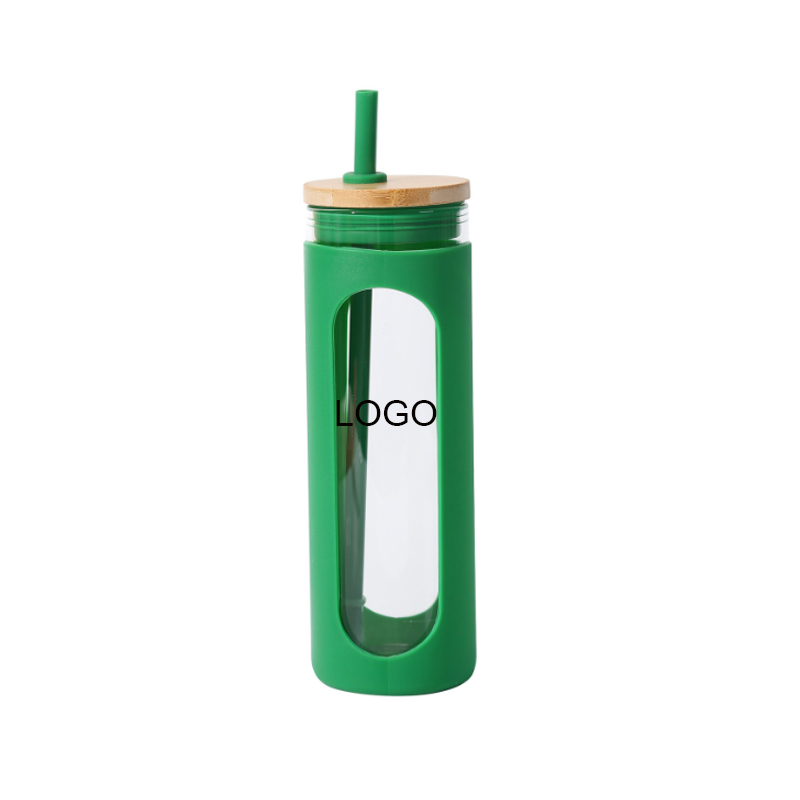 Introducing our silicone protective sleeve water bottle with a straw and wooden lid. This stylish and functional bottle is designed to keep your beverage safe and insulated. The silicone sleeve provides a secure grip, while the included straw and wooden lid add convenience. Stay hydrated in style with this versatile and eco-friendly water bottle.