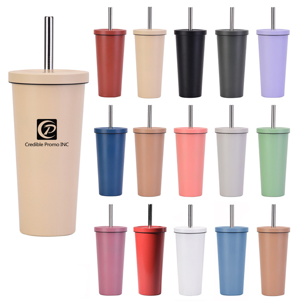 24oz Ceramic Lined Coating Travel Mug With Stainless Steel Straw and Lid