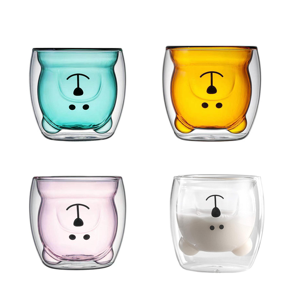 The cup is much more heat-resistant than normal glass for the use of borosilicate glass material. Heat or Cold Resistant, can suit the temperature from cold ( -20℃) to hot (140℃). Cute Mugs Bear Tea Cup Milk Couple Glass Coffee Mugs. This can be a personal cute cup used at home and office, it also can be used in restaurant to catch the customer's eyes. This quotation is for transparent color. Please consult the customer for quotation of other colors.