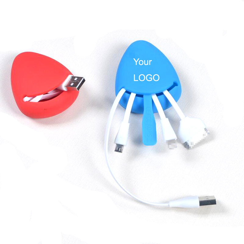Fashionable silicone case phone USB data cables, enjoy the silicone case's soft feeling. Compact and portable design, can put into your handbag easily. Suit for Windows and Mac System. Including 3 interfaces: 8 Pin (for I phone 5, 6, 7), 30 Pin(for I phone 4 and I pad), Micro PIN (for tablet PC,GALAXY TAB, SAM SUNG phones and so on). Each port can be used to charge power or transmit data. Your customized LOGO can be imprinted on the outside of silicone case.