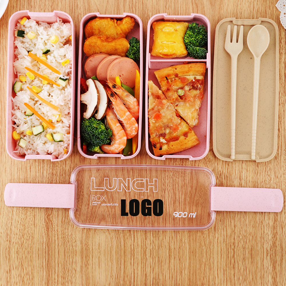 The bento box with a durable design contains a set of spoon and fork in the top for you to have a pleasant meal. It is made of natural wheat straw & plastic, BPA free, more healthy than normal plastic, eco-friendly. 900ml is enough to bring food for adult, kids, young, School teen, girls, boys. 3 Layers serves meals like main course, salad, fruits and others separately. Food grade silicone seals are close to lunch container. 2 locks tightly lock bento box and easily open. Liquids or sauces don't leak out . It’s safe to use in microwave, dishwasher and freezer. (NOTE : open the ventilation valve or removed the lid while microwave heating ).