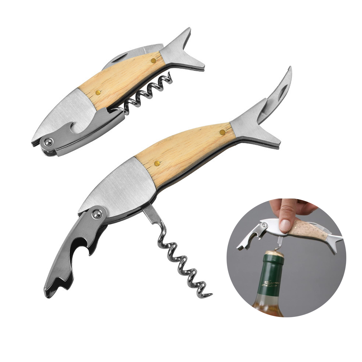 3 in 1 Lightwood Fish Corkscrew Wine Opener