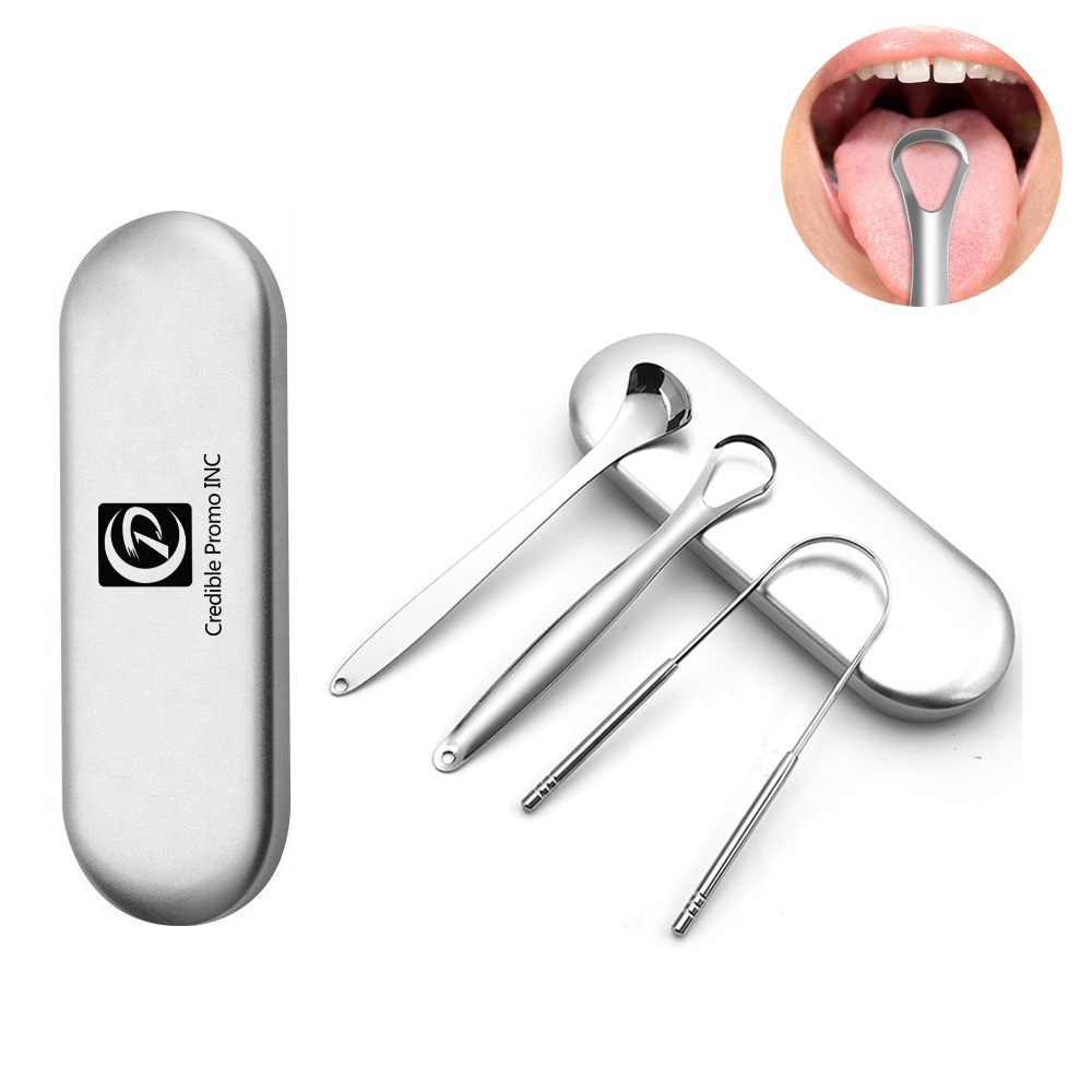 3pcs Portable Stainless Steel Tongue Scrubber Set