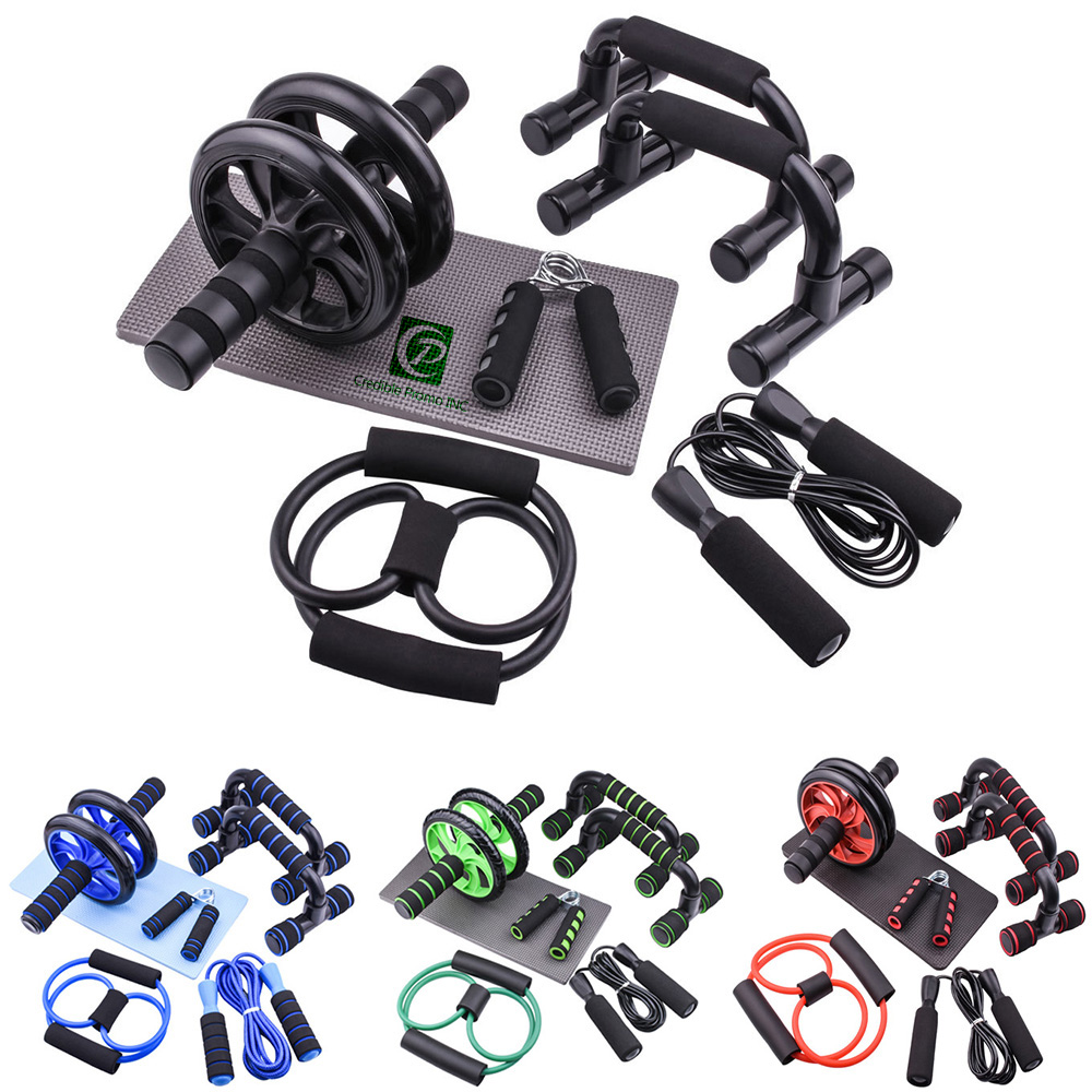 The most powerful abdominal exercise kit! AB roller wheel set Includes 1 x large size AB roller, 1 pair push-up bars, 1 x jump rope, 1 x hand gripper, 1 x spring exerciser and 1 x knee pad. Family version suitable unisex men women. Perfect for beginners and advanced exercisers. You can use this AB roller wheel to lose weight, helps you stretch and exercise the muscles of abdomen, arms, chest, shoulders, back, and get you six pack abs. Strengthen your core strength. Hand gripper can increase wrist strength. Spring exerciser is excellent for strengthening hands and arms, ensure a safe and effective way to increase grip strength. Jump rope can lose weight and stay in shape. Pushup handles can increase arm strength and exercise chest muscle.
