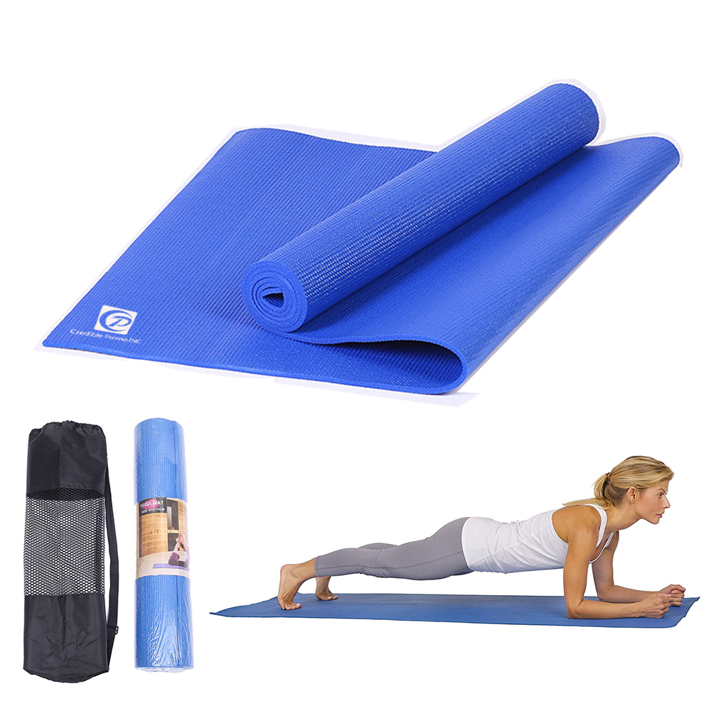 The tear-resistant mat will remain in-tact during more challenging or vigorous workout sessions. The resilient PVC material can withstand moderate to intense workouts. PVC Yoga mats with texture will grip to your floors easily without damaging them. The firm grip will keep the yoga mat from slipping. The high density padded mat will protect knees, elbows and feet from hard floors while protecting the floor underneath you.