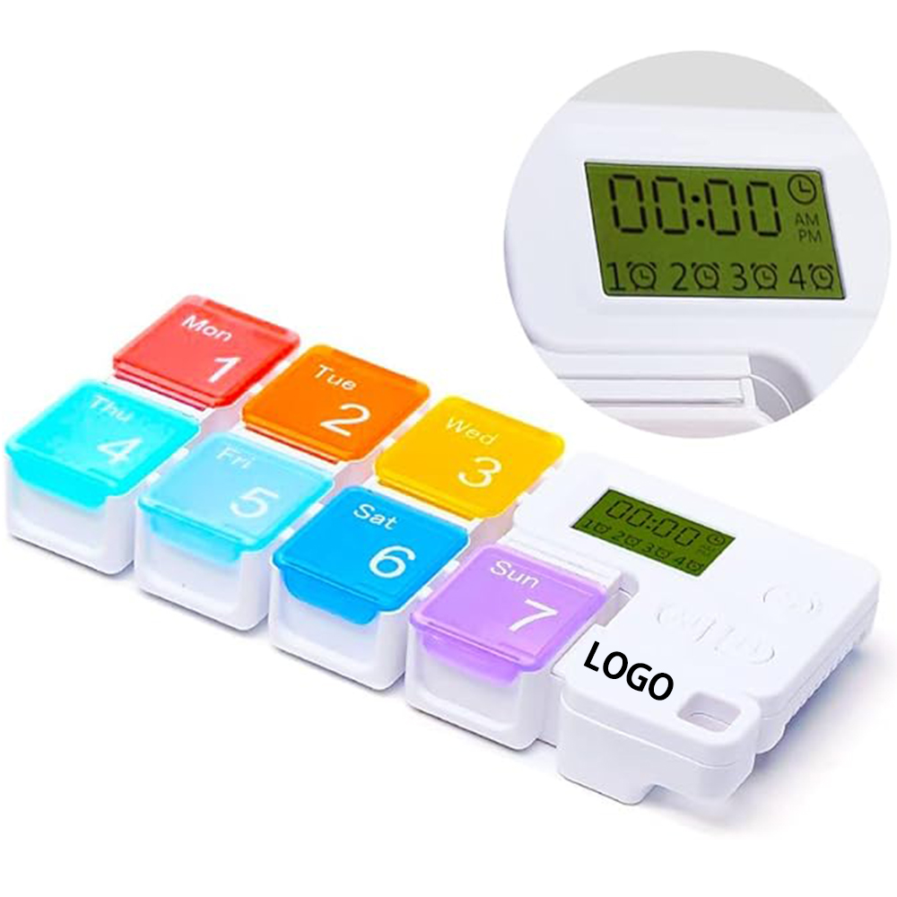 It is made of BPA Free Plastic,Made from food grade platics, safe for health care or medical use safely. Come with 7 Day pill organizer with reminder alarm, large-screen display, convenient to view the time. You can set the programmable alarm up to 4 times a day, no need to repeat settings every day. With the different colors transparent plastic lid, it's easy to distinguish the pills without opening the lids.Storage can prevent the odor of the tablets, realize moisture-proof and dust-proof. Not easy to pop off.