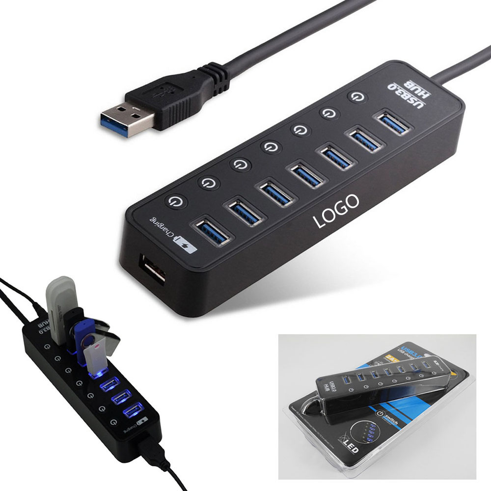 Multiple USB 3.0 interface supports plug and play, easy to use and carry. USB 3.0 hub can expand 1 USB port to 7 extra USB data ports for hard drives, flash drives among other USB devices. It also come eith a charging port, you can enjoy high speed charging. It will charge your phone or tablets faster than normal charging. The individual switch provides an easier solution to control the increasing amount of tech gadgets on the desk. And it is compatible with any USB 3.0, USB 2.0 and other devices.
