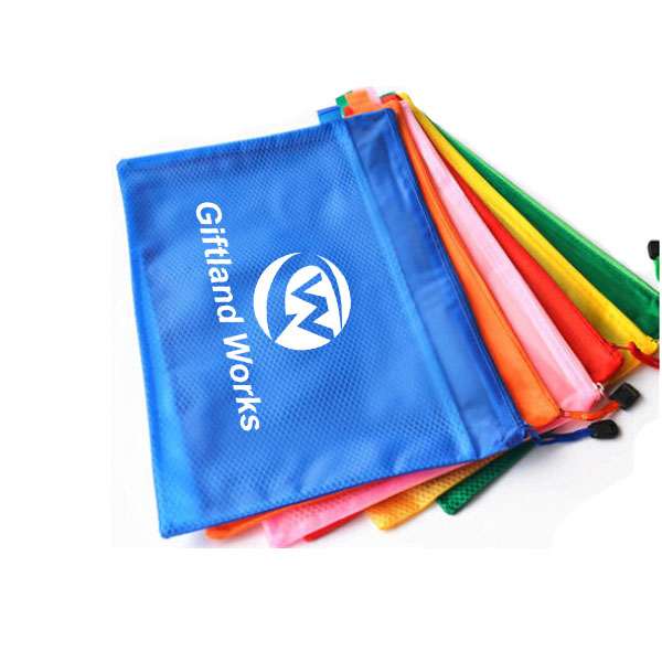 Double-deck file folder bag with zipper made from PVC, eco-friendly material. A4 size, water-proof, reusable, suitable for school, home, and office. These document holders are an easy way to keep track of all of your documents. Your logo can be printed.