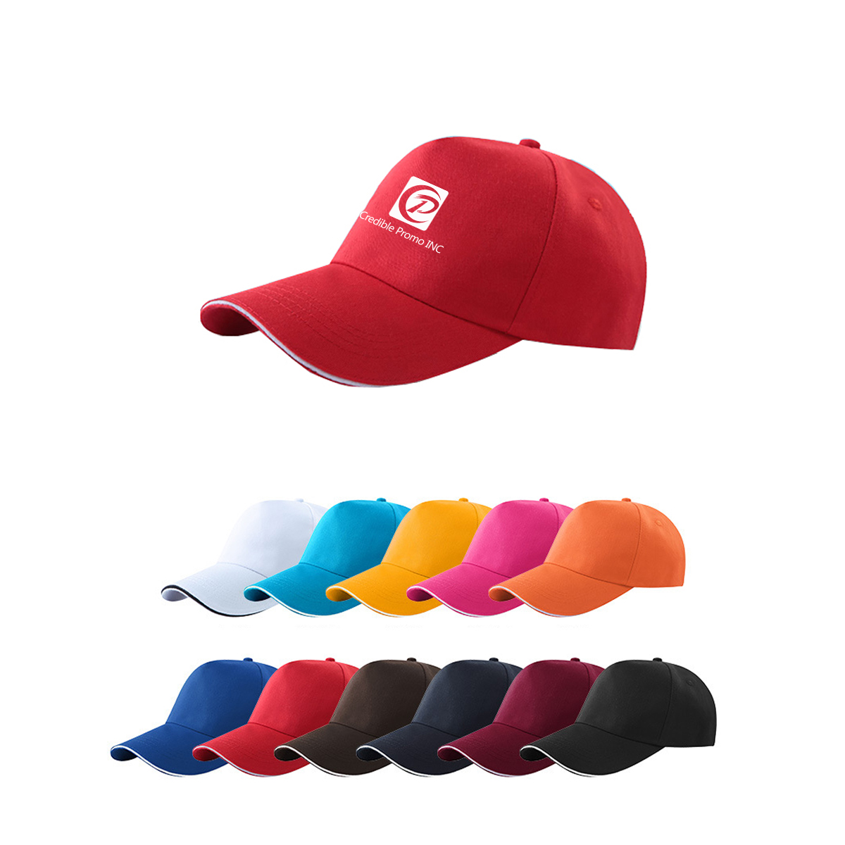100% Cotton. Center front or side logo. Moisture-wicking sweatband delivers dry and cool comfort. The snapback buckle ensures you can get a perfect fit. Circumference: 22.62-25 inches; Baseball Cap Brim: 3.51 inches; Ball Cap Crown: 3.7 Inches.