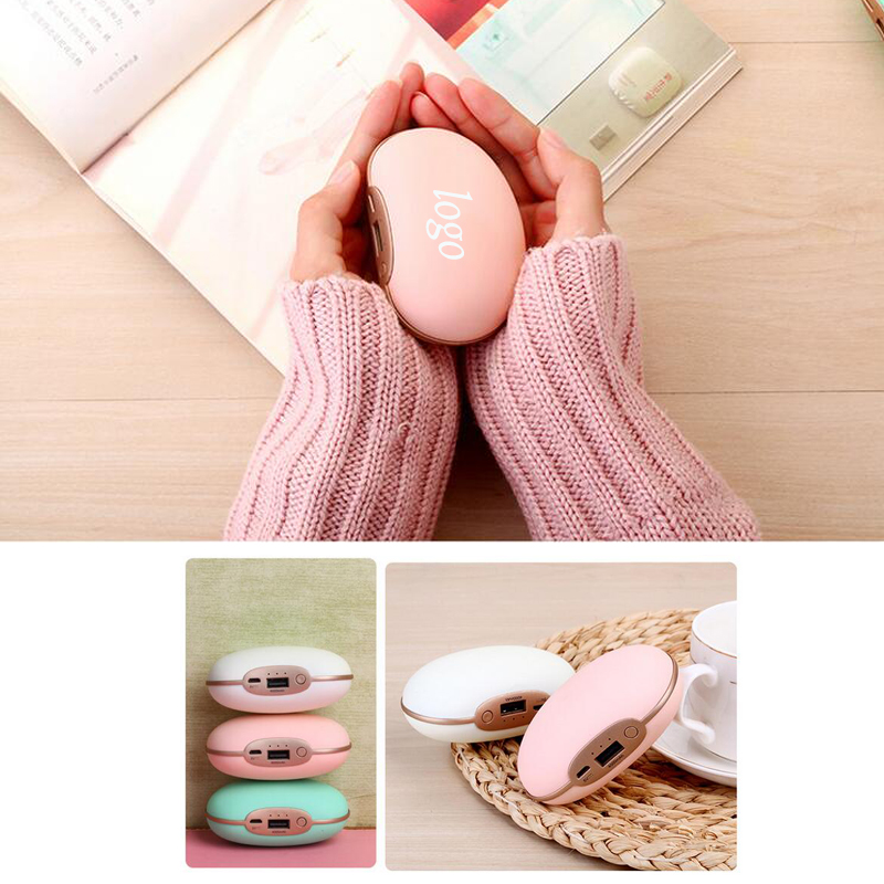 Hotest sale hand warmer power bank arrive at this Winter! It's not just a power charger and hand warmer, but also a vibration massager. Made from aluminum and rubber painting soft touch surface, bean shape design, hand hold size. Safe polymer battery inside, 4,000 mAh volume. FCC, CE, Rohs certificated. One button control design. Three colors for your option: white, green, pink. Your customized logo can be laser engraved on the surface. Price includes one USB cable and English user manual.
