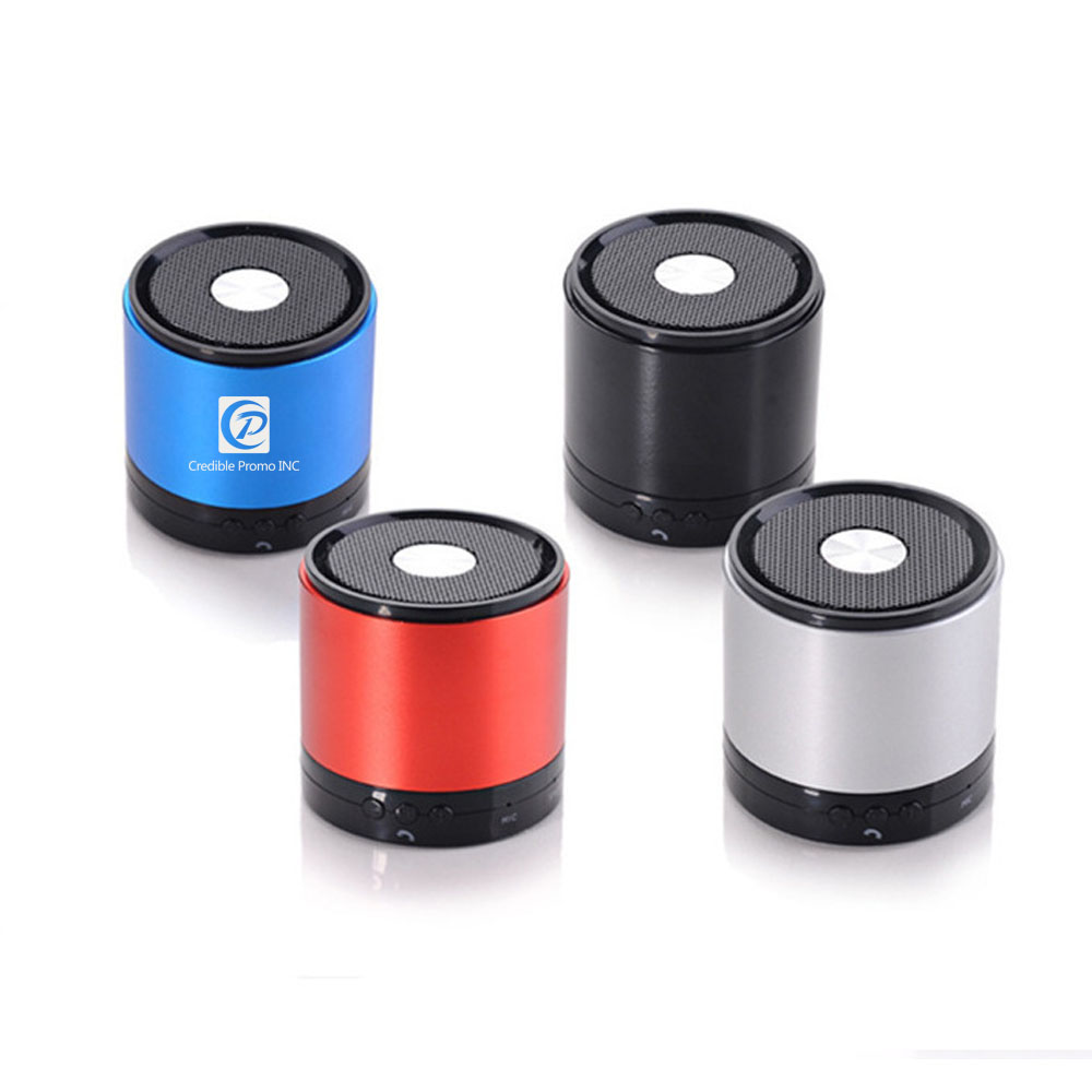 High quality mini wireless loudspeaker, with aluminum baking finish surface. Including one USB charging cable. Receive Sensitivity: Better than +95 dBm. Range: 10 meters. Working Current: 200 MA. Battery: 400 MAH. Many colors for your option. Your artwork can be laser engraved. 2.3" Diameter x 2.3" H