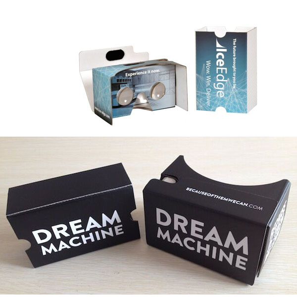 Bigger lenses with 37mm diameter lens, it provides clearer and more comfortable sense of sight for watching videos. Conductive foam button replaces the magnet switch of version 1. Works on both iOS and Android devices. Securely packed in a protective sleeve. Newest and highest quality Google Cardboard magnetic control. Custom logo can be imprinted in full color.