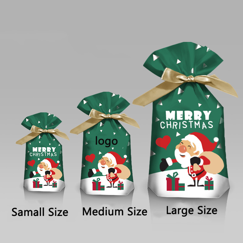 He fashionable and personalized christmas gift bag has an exquisite adjustable drawstring at the opening, which can be easily closed and opened to protect the contents and avoid loss of items. It is made of high-quality PEVA materials, which improves the load-bearing capacity of the bag. Our list price is set 50 pcs small size, we also have other package and size, welcome to consult.