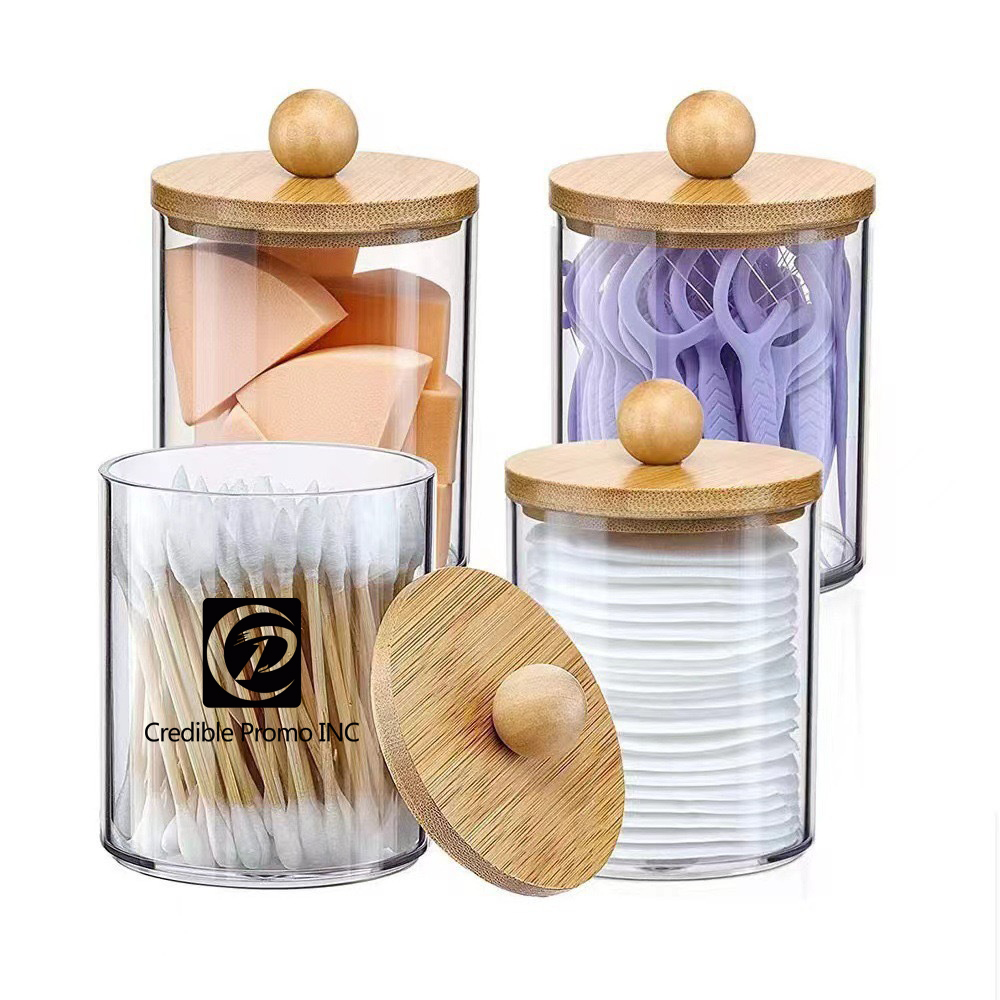| Feature : | 10 oz Clear Plastic Apothecary Jar Containers with Bamboo Lids for Cotton Swab, Ball, Pads, Floss |