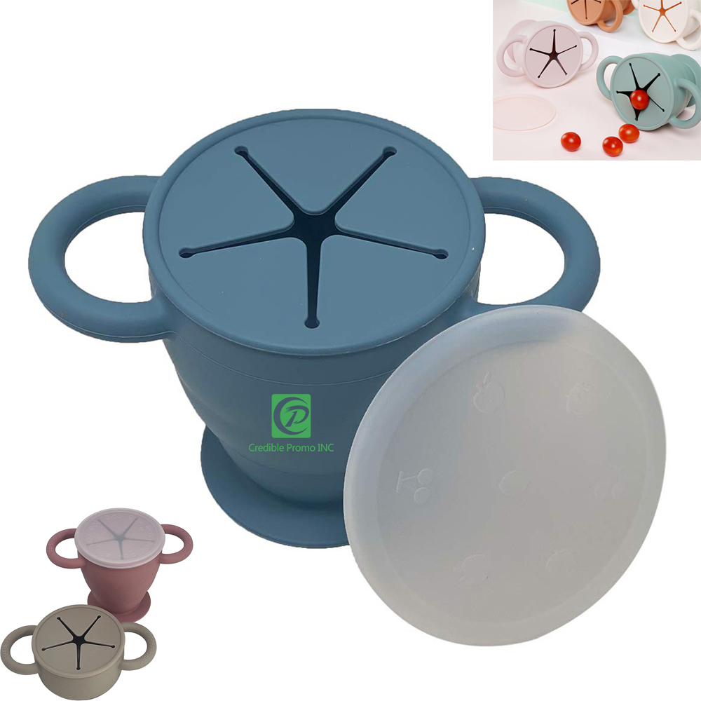 BPA Free, Phthalate Free, Latex Free. Soft silicone material. Flaps will not bite little hands reaching in and easy for baby to pull out snacks. Shake, rattle and throw and the snacks still stay inside! Large holding handles with no slip grip technology. 100% Silicone will not break, unlike plastic parts on the majority of snack cups. Dust Proof Lid to keep unwanted 鈥渢hings鈥 out. Tight and snug fit lid prevents any dust, dirt, sand, or grass from getting into baby鈥檚 snack.