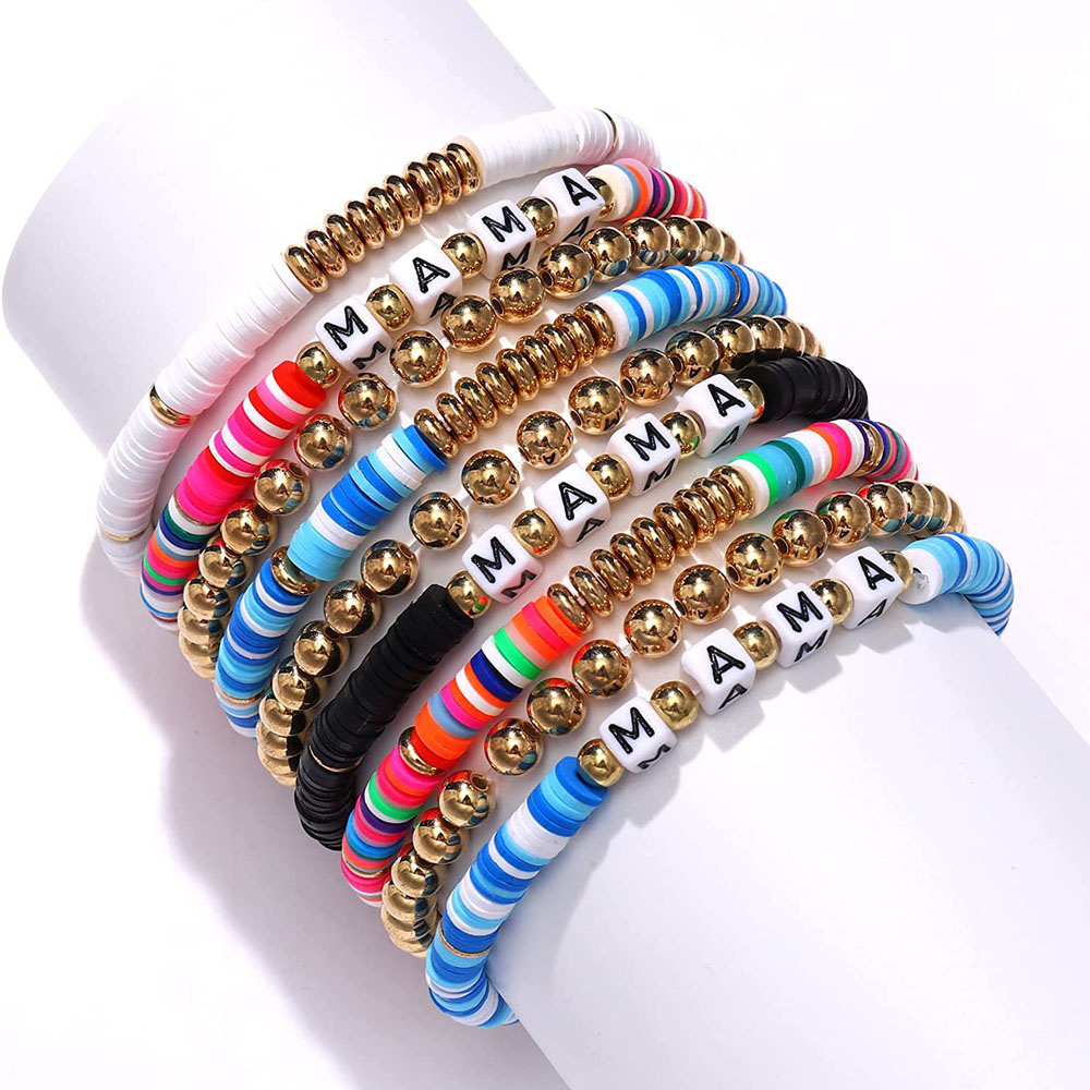 | Feature : | Custom Multilayer Clay Beaded Bracelet Set Elastic Wristband |