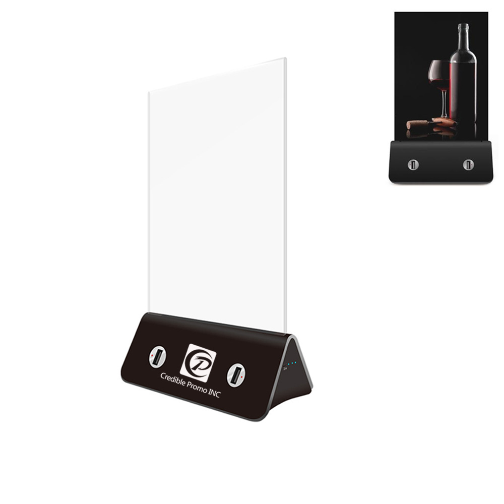 USB table charger menu power bank creates a countertop charging station. Designed with four USB ports to charge almost any electrical device. The menu holder comes with a piece of acrylic panel which you can place your menu inside. Ideal for waiting areas, lounges, reception areas, or even bars. This price is based on battery capacity 10,000mAh, we also have 6000mAh and 13000mAh.