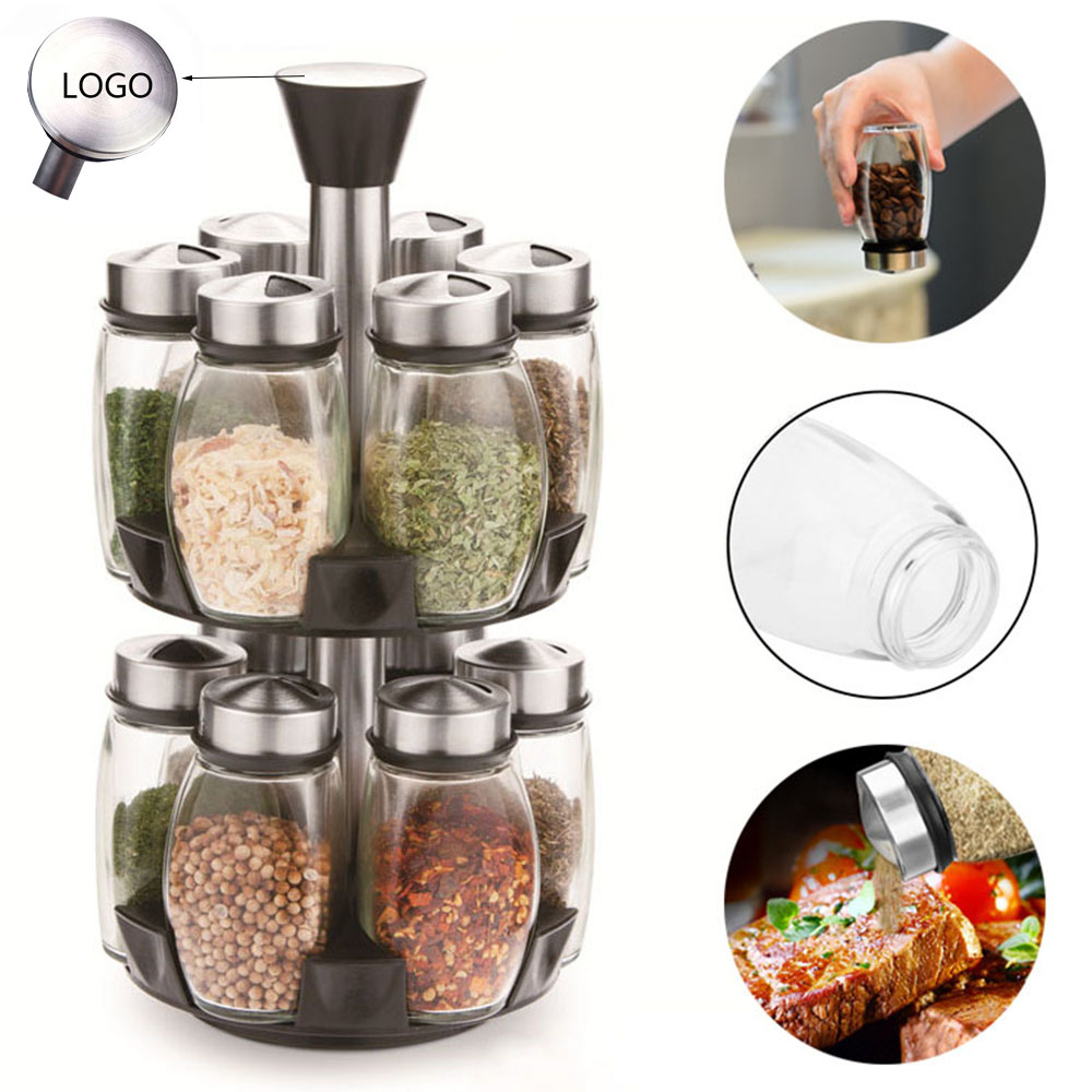 | Feature : | Revolving Spice Rack Organizer Two Tier Seasoning Organizer Set With 12 Glass Jar Bottles |