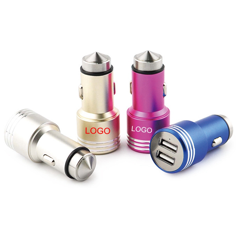 Dual USB Portable Vehicle Car Charger with Safety Hammer