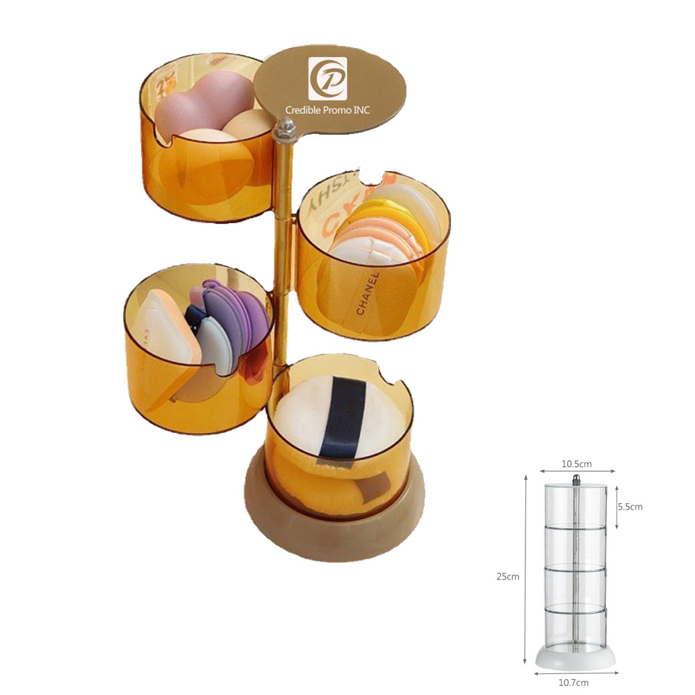 This kind of Rotating Powder Puff Storage Box is made of plastic, which is safe, environmentally friendly, durable and more hygienic. It's very cute, practical and portable. People who make up will like it. This style comes in two, three and four layers. Our quotation is based on four layers. The logo can be customized.