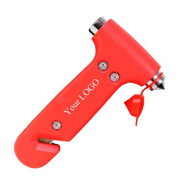 Auto Emergency Hammer, with window punch and belt cutter. Size is 5 1/4" x 3" x 1". When emergency arise, this hammer with a fine point tip shatters auto safety glass, and cut off selfbelt with another tip. Have this one, you won't be panic under unforeseen circumstance. Your LOGO can be imprinted on the handle.