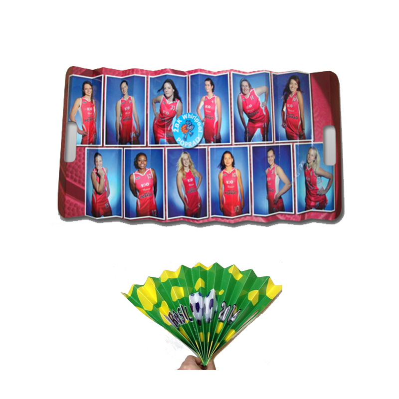 Fan Banner, made from 10 oz coated paper. Your artwork can be fully imprinted on both sides. When you are joining in events, watching sports or other campaigns. Use it to make some noise and show your support. It also can be a manual fan. Great promotional item for any events and activities.