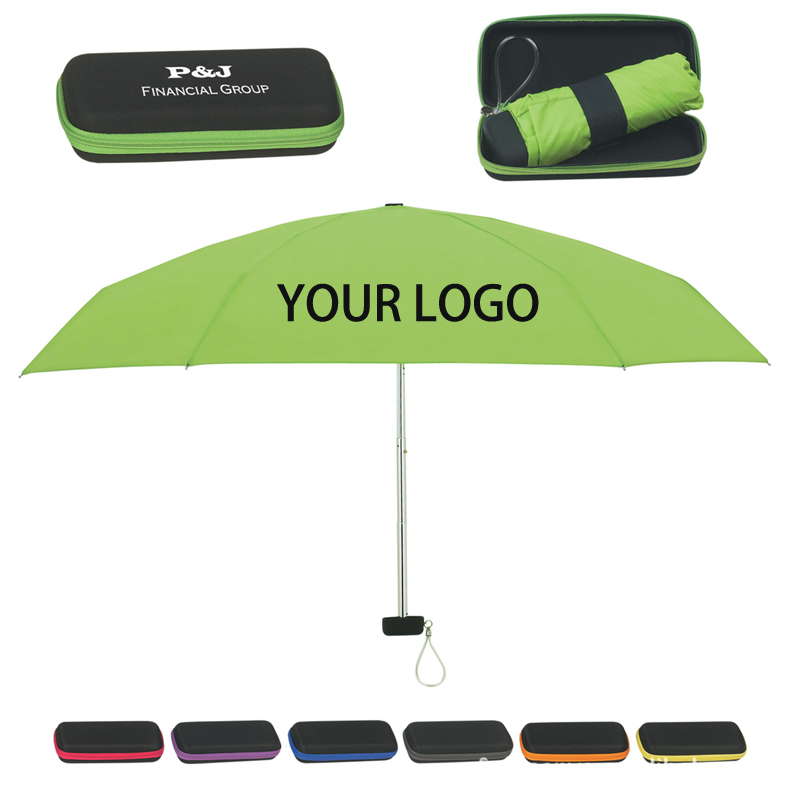 This is a smart design for person carrying. 19" five folding umbrella into a EVA case, perfect to develop your brand name as a gift. Frames made of aluminium and the handle made of plastic. Many color options for choose. Wide imprint area welcome any artwork.