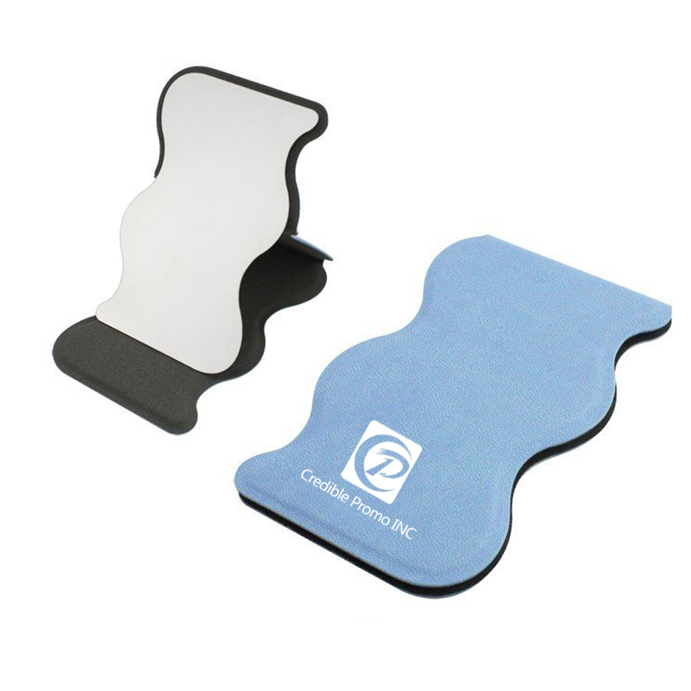 | Feature : | Folding Wave Shape Unbreakable Shatterproof Stainless Steel Compact Small Travel Mirror With PU Leather Case Cover |