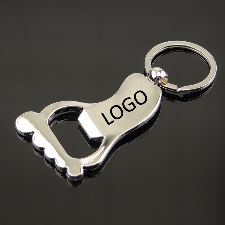 Premium quality foot shape bottle opener with keychain. Made from zinc alloy. Polished and electroplating surface. Corrosion resistance and abrasion resistance. Attach to your bags or key with a quality key ring. Great for the theme of beach, party, camping, or other activities. Your logo can be laser engraved or silk screen imprinted. We can customize the shape as your design, welcome inquiry us!