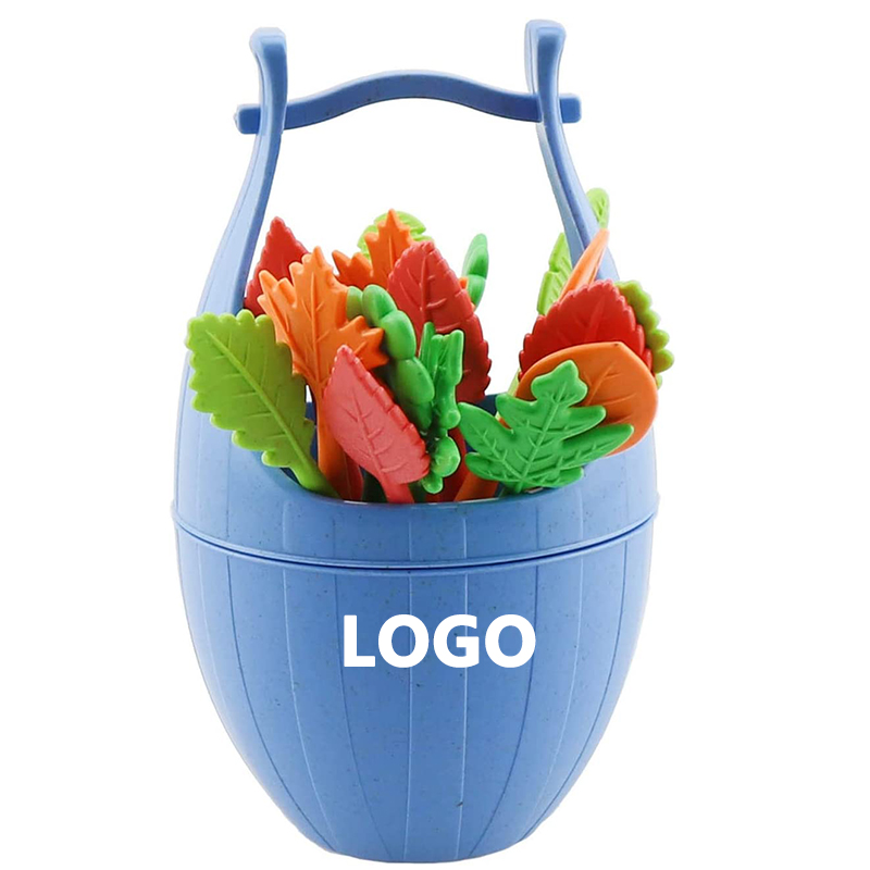 Package includes 1 small barrel and 16 random-color leaf fruit forks, the material is brand new PP plastic, made of food-safe and environmentally friendly plastic. Reusable and very easy to clean. It can be used when eating fruits, desserts, sandwiches and snacks. It is very suitable for daily use in the family and can also be used as decoration.