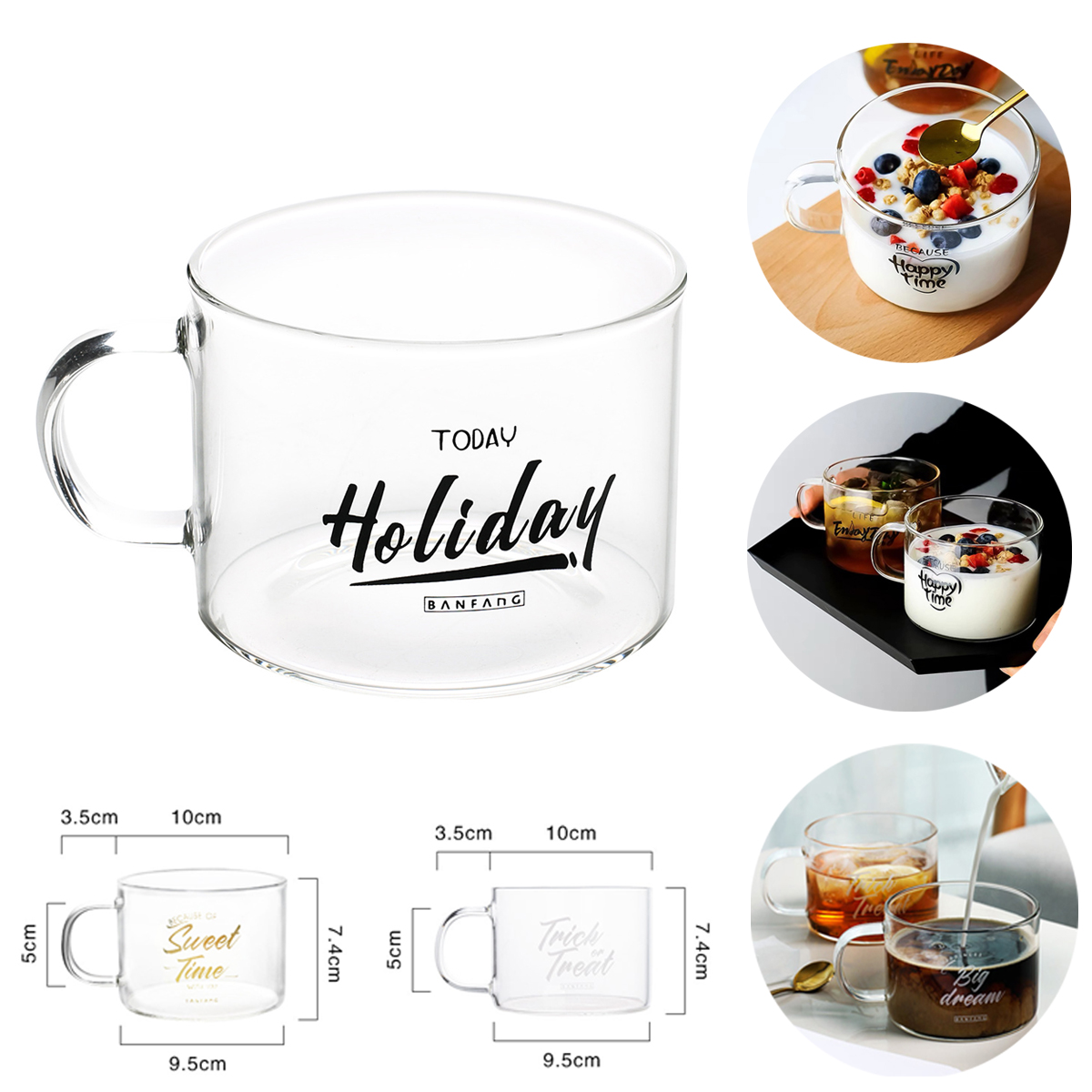 | Feature : | Glass Coffee Mug Transparent Tea Cup with Handle |